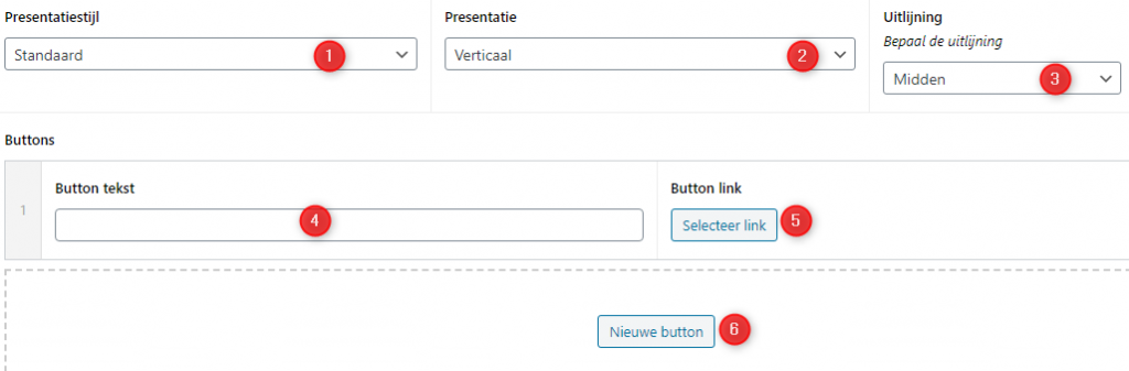 - Indien er meerdere presentatiestijlen voor u ontwikkeld zijn, kunt u hier kiezen welke stijl de button moet hebben.