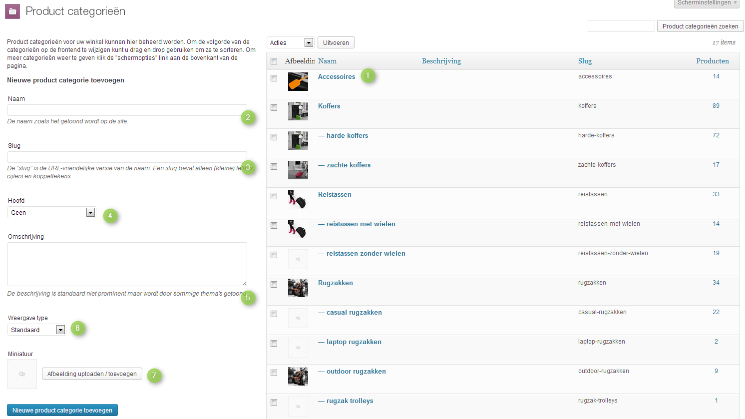 Alle producten kun je onderverdelen in (sub)categorieën. Deze kun je hier beheren