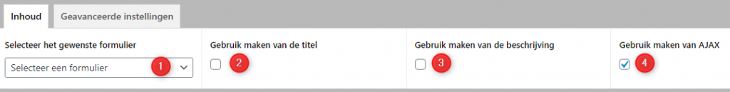 - Geef aan of u gebruik wil maken van AJAX.