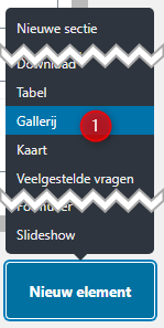 Klik hiervoor op Nieuw element en kies voor Galerij.