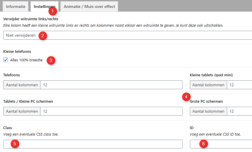 - Geef aan hoe de kolom verdeeld moet worden op kleine telefoons.