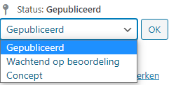 Indien u een reeds gepubliceerde pagina nog weer op concept wil zetten klikt u op bewerken achter Status: Gepubliceerd.