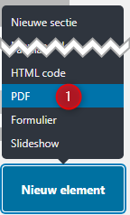 Klik hiervoor op Nieuw element en kies voor PDF.