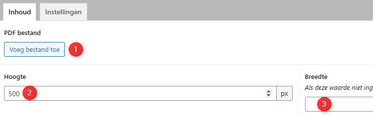 - Vul de breedte in hoe u de PDF getoond wil hebben. Indien leeg wordt deze op 100% getoond.