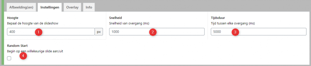 4. Geef aan of er een random eerste afbeelding gekozen moet worden.