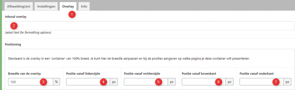 1. Indien uw parallax al afbeeldingen bevat, ziet u deze hier staan. Staan er meerdere dan kunt u deze oppakken met de muis om in de juiste volgorde te zetten. Een reeds geplaatste afbeelding kunt u verwijderen met het kruisje.