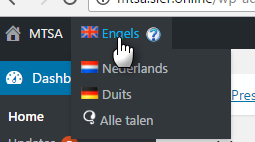 Boven uw beheerderspaneel ziet u in welke talen de website bewerkt kan worden.