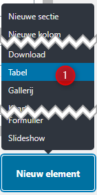 Klik hiervoor op Nieuw element en kies voor Tabel.