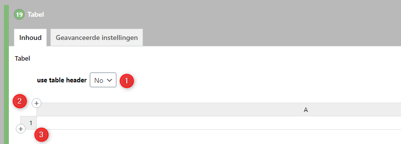 - Geef aan of uw tabel een header moet bevatten.