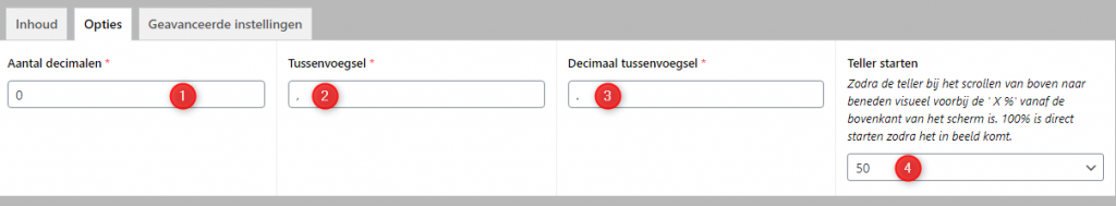 U kunt nog wat aangepaste instellingen maken, zoals hoe een teller zich moet gedragen wanneer men er met de muis overheen gaat of dat de teller inspringt op de pagina. Dit kunt u instellen in het tabblad Geavanceerde instellingen.