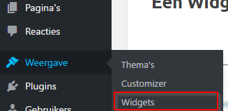 Een widget toevoegen In het dashboard heeft u de item Weergave en daarnaast heeft u Widgets, zodra dit opgevraagd wordt kunnen er widgets toegevoegd worden aan uw installatie. 0 0